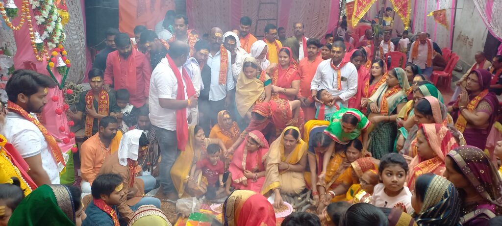 बिल्थरारोड। स्थानीय नगर के वार्ड नम्बर 4 में मुहल्ले वासियों द्वारा श्रीराम जन्मोत्सव( रामनवमी )के अवसर पर गुरुवार को अखंड रामचरित मानस पाठ का आयोजन किया गया। शुक्रवार को रामायण पाठ के समापन पर हवन पूजन व आरती में भारी संख्या में महिलाएं और नगर के लोगो ने भाग लिया इसके उपरांत विशाल भण्डारे का आयोजन किया गया। जिसमें सैकड़ो लोगो ने प्रसाद ग्रहण किया। कार्यक्रम में नगर निवर्तमान चेयरमैन दिनेश कुमार गुप्त, आरएसएस के नगर प्रचारक नवीन जी, अवधेश यादव, बबलू वर्मा, पवन वर्मा, बिनोद वर्मा,सतीश गुप्ता,मन्नू सोनी,मोहन सिंह वर्मा, माखन मद्धेशिया, सत्यम,कृष्णा मद्धेशिया, सोनू, गोलू, सुजीत आदि मौजूद रहे।