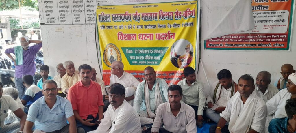अनुसूचित जनजाति का प्रमाणपत्र जारी नही होने पर अखिल भारतवर्षीय गोंड महासभा तहसील में धरने पर बैठा