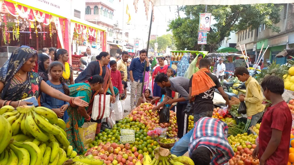 छठ पूजा की खरीदारी के लिए ग्रामीण अंचलों से उमड़ी भीड़, आकर्षक रंगों में सजी है फलों की दुकानें