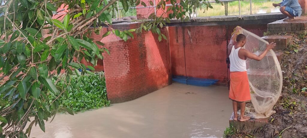 हल्दीरामपुर में बने रेगुलेटर का फाटक सम्बंधित विभाग के कर्मचारियों की लापरवाही के चलते ठीक से बंद नही होने से उल्टे नदी का पानी कोइली मुहाँनताल में गिर रहा है