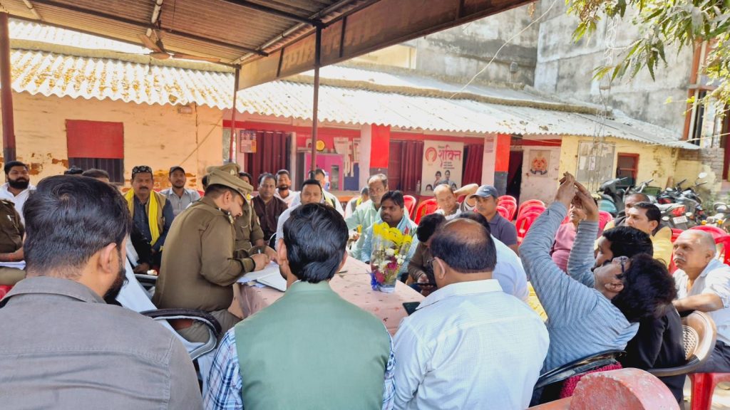 बिल्थरारोड। रंगों का त्योहार होली और रमजान के पावन पर्व के मद्देनजर रविवार को शांति समिति की बैठक पुलिस चौकी सीयर परिसर में आयोजित की गई। बैठक में होली और रमजान में आपसी भाईचारा और सांप्रदायिक सौहार्द पूर्ण वातावरण में मनाने की रणनीति तय की गई। इस मौके पर उभांव इंस्पेक्टर राजेन्द प्रसाद सिंह ने होली के त्योहार पर प्रकाश डालते हुए कहा कि हंसी-खुशी माहौल में मिलजुल कर पर्व मनाने से उसका उत्साह बढता है। उन्होंने कहा कि होली के दिन अवैध शराब पर पूरी तरह प्रतिबंध रहेगा। कहीं भी अवैध शराब बेचने की सूचना मिलने पर फौरन पुलिस को सूचित किया जाय, ताकि समय रहते कार्रवाई की जा सके। उन्होंने प्रधानों से अपने अपने गांव में होलिका दहन सकुशल संपन्न कराने का अनुरोध किया। उन्होंने बताया कि होली के दिन पुलिस के जवान मुस्तैद रहेंगे। उन्होंने उन्होंने कहा होली पर हुड़दंग मचाने वालों पर पुलिस की पैनी नजर रहेगी। मुस्लिम भाई भी रमजान के त्योहार को आपसी सौहार्द के साथ मनाये।माहौल बिगाड़ने वालों को बख्शा नहीं जाएगा। इस दौरान लोगों ने अपनी-अपनी समस्याएं बताई इस्पेक्टर ने समस्याओं के शीघ्र समाधान का भरोसा दिलाया। बैठक में बिजली, पानी, सफाई आदि का मुद्दा जोर-शोर से छाया रहा। इस मौके पर चौकी प्रभारी सीयर बी,बी सिंह, भाजपा मंडल अध्यक्ष दिलीप सिंह, शैलेन्द्र सिंह, जिलापंचायत सदस्य चन्द्रभान राम, मोहम्मद आतिफ, पूर्व प्रधान अब्दुल रहमान, सभासद मोहम्मद सद्दाम, सभासद नीलेश दीपू, सभासद राममनोहर गांधी, मोहम्मद नैयर, उमेश अम्बेडकर, ,दानिश आफताब,अली रजा , ग्राम प्रधान कुन्डैल अख्तर अली, धर्मेन्द्र सोनी, दीपक कनौजिया, देवानन्द शुक्ल, सुनील कुमार टिंकू आदि मौजूद रहे।