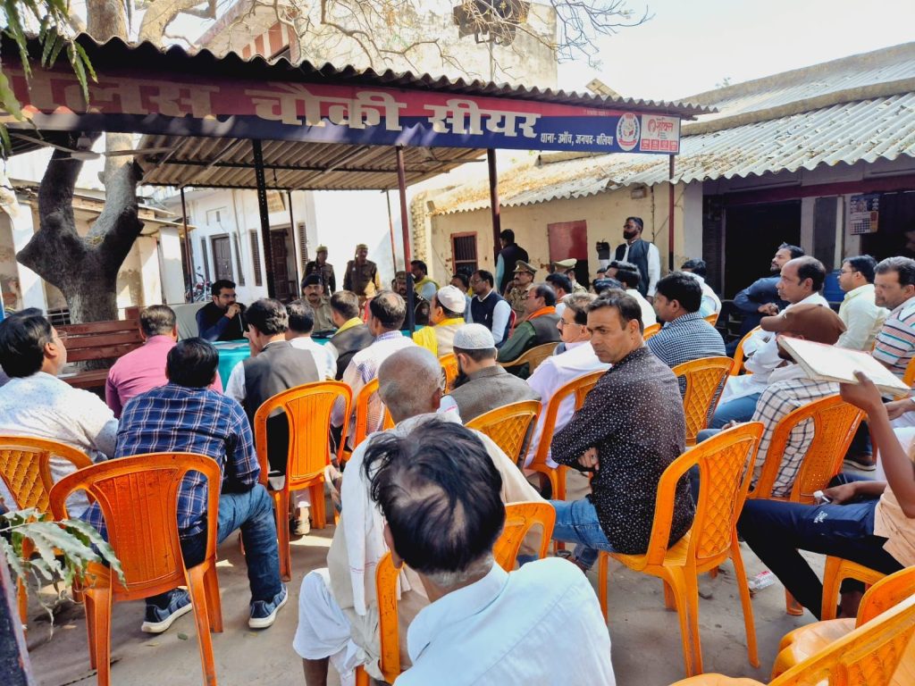 बिल्थरारोड। रंगों का त्योहार होली और रमजान के पावन पर्व के मद्देनजर शुक्रवार को उपजिलाधिकारी निशान्त उपाध्याय की अध्यक्षता में  शांति समिति की बैठक पुलिस चौकी सीयर परिसर में आयोजित की गई। बैठक में तय की गई।  इस मौके पर एसडीएम निशान्त उपाध्याय ने कहा कि होली और रमजान में आपसी भाईचारा और सांप्रदायिक सौहार्द पूर्ण वातावरण में मनाने की अपील किया। कहा कि होली के त्योहार पर प्रकाश डालते हुए कहा कि हंसी-खुशी माहौल में मिलजुल कर पर्व मनाने से उसका उत्साह बढता है। उन्होंने कहा कि होली के दिन अवैध शराब पर पूरी तरह प्रतिबंध रहेगा। वही क्षेत्राधिकारी रसड़ा आशीष मिश्र ने कहा कि कहीं भी अवैध शराब बेचने की सूचना मिलने पर फौरन पुलिस को सूचित किया जाय, ताकि समय रहते कार्रवाई की जा सके। उन्होंने लोगो से अपने अपने गांव में होलिका दहन सकुशल संपन्न कराने का अनुरोध किया। उन्होंने बताया कि होली के दिन पुलिस के जवान मुस्तैद रहेंगे।  कहा कि होली पर हुड़दंग मचाने वालों पर पुलिस की पैनी नजर रहेगी।  मुस्लिम भाई भी रमजान के त्योहार को आपसी सौहार्द के साथ मनाये।माहौल बिगाड़ने वालों को बख्शा नहीं जाएगा। इस दौरान लोगों ने अपनी-अपनी समस्याएं बताई  ने समस्याओं के शीघ्र समाधान का भरोसा दिलाया। इस मौके पर  इंस्पेक्टर उभांव राजेन्द्र प्रसाद सिंह, थानाध्यक्ष नगरा कौशल कुमार पाठक, थानाध्यक्ष भीमपुरा मदन पटेल, चौकी प्रभारी सीयर बी,बी सिंह, सभासद  मोहम्मद सद्दाम चिकित्साधिकारी सीयर डॉ विक्रम सेन सोनकर, सभासद नीलेश दीपू, मोहम्मद नैयर , सुभासपा जिलाध्यक्ष मोहम्मद आतिफ, भाजपा मंडल अध्यक्ष अरुण तिवारी, आलोक कुमार, दानिश आफताब, धन्नू सोनी आदि मौजूद रहे।