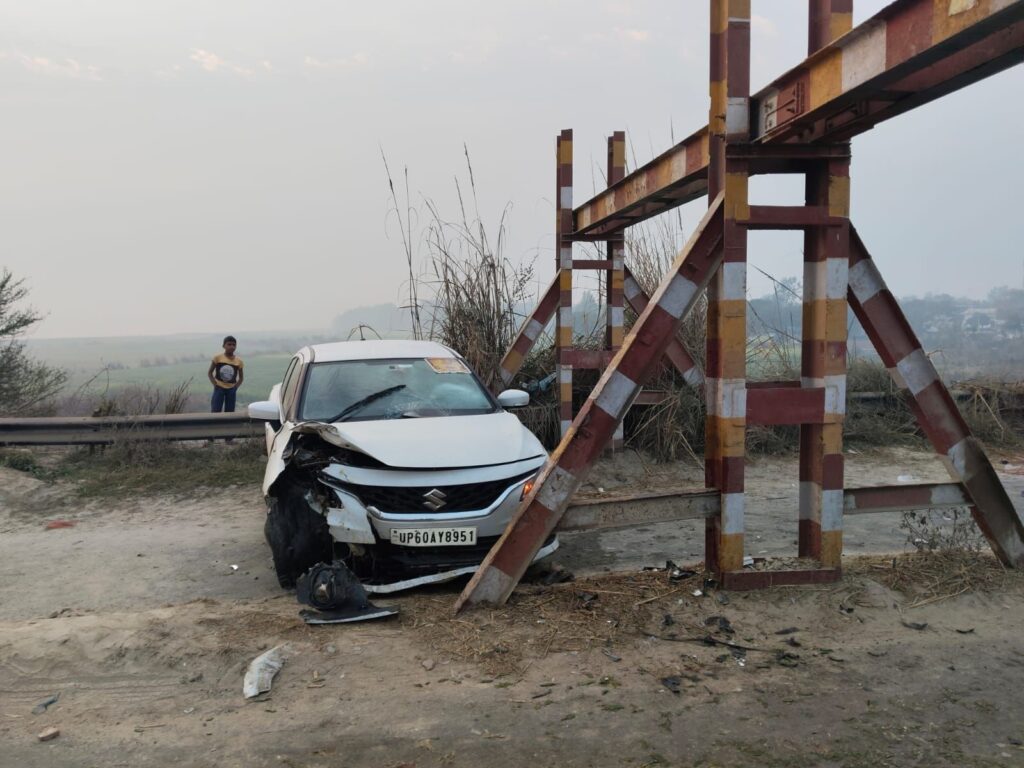 बलिया। जनपद के तुर्तीपार-भागलपुर पुल पर रविवार तड़के एक बड़ा सड़क हादसा होते-होते टल गया। देवरिया जनपद के बरहज से शादी समारोह में शामिल होकर लौट रहे एक परिवार की बलेनो कार पुल पर लगे लोहे के डिवाइडर से टकरा गई। हादसे में कार बुरी तरह क्षतिग्रस्त हो गई, लेकिन एयरबैग खुल जाने से कार में सवार तीन बच्चों सहित सात लोगों की जान बच गई।