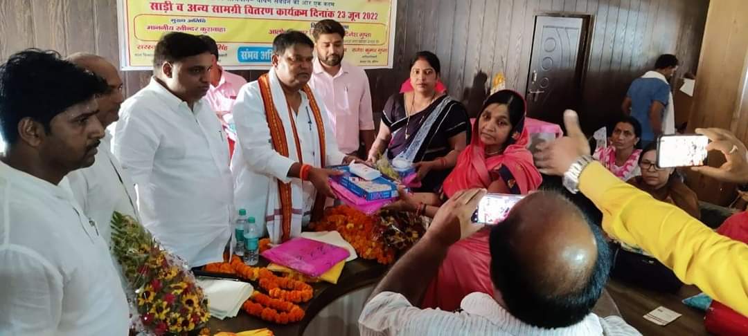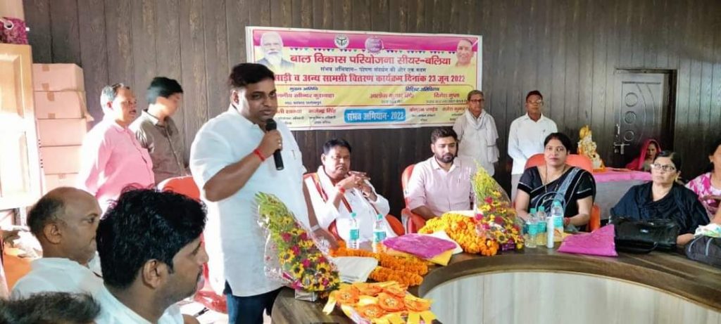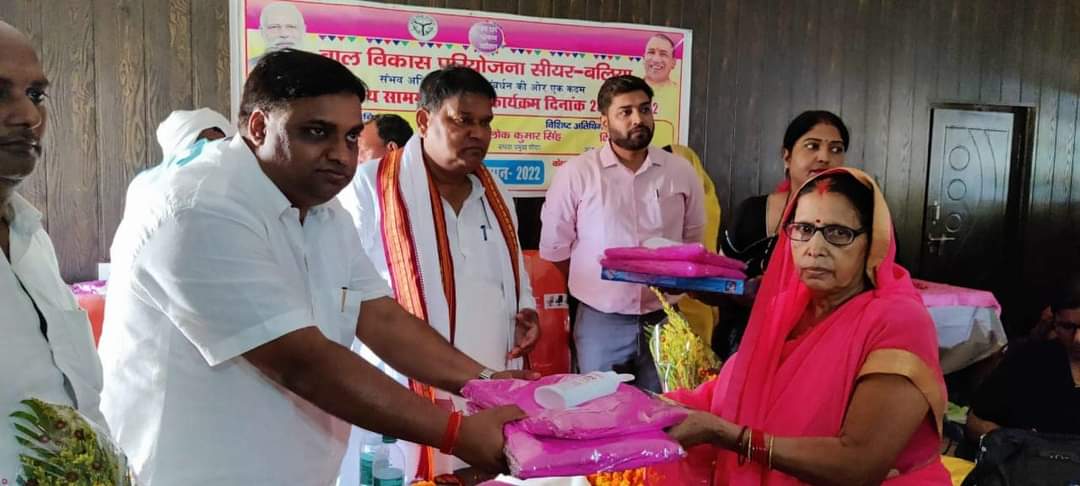 बिल्थरारोड। सीयर ब्लाक के डावकरा हाल में गुरुवार को बाल विकास परियोजना द्वारा आयोजित एक कार्यक्रम में मुख्य अतिथि सांसद सलेमपुर रविन्द्र कुशवाहा द्वारा 205 आंगनबाड़ी कार्यकत्रियों व 154 सहायिकाओं को ड्रेस के रूप में 02 साड़ी व हेन्डवास, बच्चों को खेलने के लिए लुडो पैकेज वितरण किया गया। कार्यक्रम का शुभारंभ सासंद रवीन्द्र कुशवाहा ने फीता काटकर किया। कार्यक्रम के मुख्य अतिथि सासंद रवीन्द्र कुशवाहा ने कहा कि सरकार अनेक योजनाएं चलाकर बच्चों व महिलाओं को लाभ पहुँचा रही है। उन्होंने कहा आप लोग इन योजनाओं को पात्रों तक सही रूप में पहुँचाने का कार्य करे। जिससे समाज के अंतिम व्यक्ति को लाभ मिल सके। कार्यक्रम में आये हुए सभी अतिथियों को सीडीपीओ सरस्वती शाक्या ने अंगवस्त्र देकर सम्मानित किया । मुख्य अतिथि के द्वारा आंगनबाड़ी कार्यकत्री व सहायिकाओं प्रेम कुमारी, संगीता, जैबुनिसा, इन्दु, प्रेम लता, गैयशा सिंह अनुपमा, माया, शिला, आदि को साड़ी , हेंडवास आदि वितरित किया गया। ड्रेस मिलते ही आंगनबाड़ी कार्यकत्रियों के चेहरे खिल उठे।इस मौके पर नगर पंचायत चेयरमैन दिनेश कुमार गुप्ता, खंन्ड विकास अधिकारी गजेन्द्र प्रताप सिंह, अशोक मौर्या, भाजपा नेता सतीश गुप्ता, सुधीर मिश्रा, शम्भू गोड़, मुन्ना मिश्रा , राम मोहर गाधीं, जगदीश कुशवाहा, प्रधान जय प्रकाश मौर्या, यशवन्त मौर्या रणजीत कुशवाहा , आंगनबाड़ी सहायिका रामरानी, आंगनबाड़ी के लिपिक चन्दन सिंह, रमाशंकर यादव, पतिराम आदि मौजूद रहे।