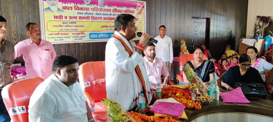बाल विकास परियोजना द्वारा सीयर ब्लाक के डावकरा हाल में आयोजित कार्यक्रम में सांसद रविन्द्र कुशवाहा ने आंगनबाड़ी कार्यकत्रियों को ड्रेस व अन्य समान वितरित किया