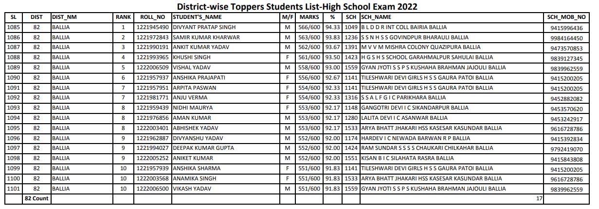 बिल्थरारोड। यूपी बोर्ड परीक्षा का हाईस्कूल और इण्टर का शनिवार को आये परिणाम में तहसील क्षेत्र के कई छात्रों ने जिले में टॉपटेन में अपना परचम लहराया। हाईस्कूल में ज्ञान ज्योति स्कूल कुशहा ब्राह्मण जजौली के विशाल यादव ने जिले में 93 प्रतिशत अंक प्राप्त कर पाँचवा स्थान , विकास यादव 91.83 अंक प्राप्त कर 10 वा स्थान वही तीलेश्वरी देवी कन्या विद्यालय गौरा भीमपुरा की अंशिका प्रजापति 92,67 अंक प्राप्त कर छठवा स्थान, अर्पिता पासवान 92,33 अंक प्राप्त कर सातवां स्थान और अंशिका शर्मा ने 91,83 अंक प्राप्त कर बालिका 10 वा स्थान प्राप्त कर अपने माता पिता और गुरुजनों के साथ साथ विद्यालय का नाम रोशन किया है। वही इंटरमीडिएट बोर्ड परीक्षा के आये परिणाम में जीएम ए एम इण्टर कालेज बिल्थरारोड के हर्ष मौर्य ने जिले के टॉपटेन सूची में 87 प्रतिशत अंक प्राप्त कर जिले में पाचवा स्थान और नजीमुद्दीन अंसारी ने 85 प्रतिशत अंक प्राप्त कर 10 वा स्थान प्राप्त कर परिजनों , गुरुजनों और विद्यालय का नाम रोशन किया है।