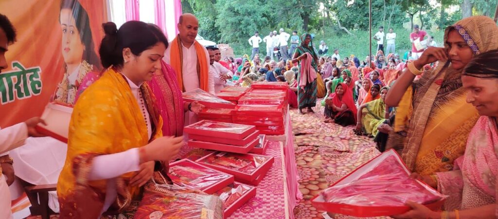 अंतरराष्ट्रीय कथावाचिका पण्डित गौरी गौरांगी ने नवरात्र के अवसर पर 5100 गरीब महिलाओं को साड़ी वितरित किया