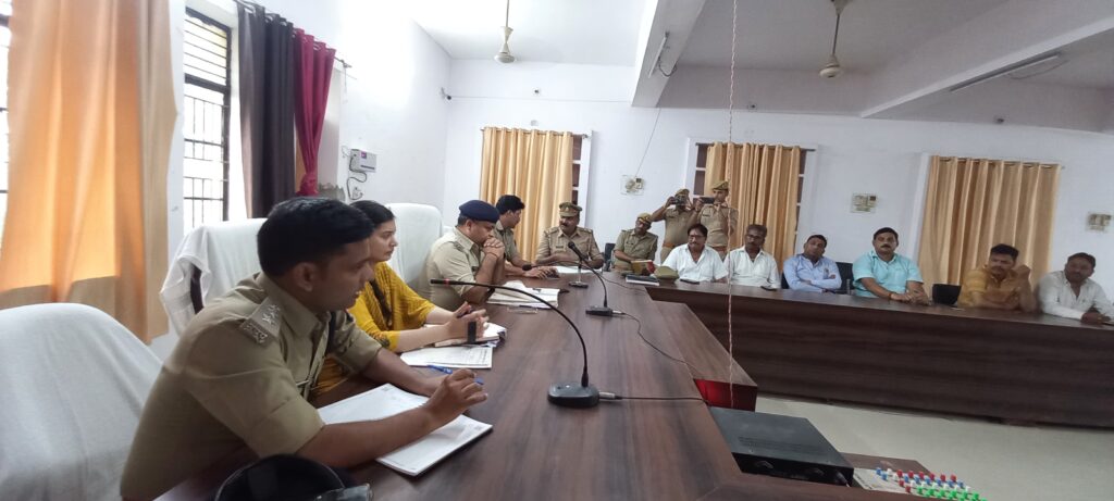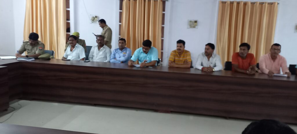 बिल्थरारोड। आगामी 6 सितम्बर को निकलने वाले महावीरी झण्डा जुलूस के मद्देनजर तहसील सभागार में शुक्रवार को महावीरी झण्डा समिति के अध्यक्ष व पदाधिकारियों के साथ एडिशनल एसपी दुर्गा प्रसाद तिवारी के नेतृत्व में एक आवश्यक बैठक की गई। इस मौके पर एडिशनल एसपी दुर्गा प्रसाद तिवारी ने कहा कि महावीरी झंडा जुलूस को आपसी सौहार्द और शांतिपूर्ण तरीके से निकाले।एडिशनल एसपी ने कहा कि जैसा कि आप जानते हैं कि महाबीरी झंडा क्यों मनाया जाता है अंग्रेजों के शासक में हम लोग अपना शौर्य प्रदर्शन दिखाने के लिए इस कार्यक्रम की शुरुआत की गई। आज पूरे जिले में बड़े जोरों शोरों से मनाया जाता है। उन्होंने कहा कि पहले जैसा परम्परागत होता रहा है वैसा ही होगा नया कुछ नही होगा। हम लोग आपके साथ पूरे सहयोग में रहेंगे। कहा कि झंडा जुलूस के दौरान पुलिस की पैनी नजर रहेगी। अगर कोई व्यक्ति अराजकता फैलता है या नियम के विरुद्ध जाएगा तो उनके खिलाफ कठोर करवाई की जाएगी। उन्होंने कहा कि सुरक्षा को दृष्टिगत रखते हुए चाक चौबन्द व्यवस्था रहेगी। भारी मात्रा में पुरुष व महिला कांस्टेबल तैनात रहेंगे। उन्होंने शराब सेवन के लिए मना किया।इस मौके पर उपजिलाधिकारी दीपशिखा सिंह, सीओ रसड़ा शिवनारायण वैस, इंस्पेक्टर उभांव अविनाश कुमार सिंह, चौकी इंचार्ज सीयर मदनलाल, यूनाइटेड क्लब के अध्यक्ष सन्नी जायसवाल, दुर्गा प्रसाद मधुलाला, पूर्व चैयरमैन अशोक मधुर, व्यापार मण्डल के अध्यक्ष प्रशान्त कुमार मन्टू, शिवकुमार जायसवाल, देवेंद्र गुप्ता, धर्मेन्द्र सोनी, सुनील कुमार टिंकु, गुलाब चंद जायसवाल भोलू, मनीष मद्धेशिया, फरहान अशफाक उर्फ काजू भाई, सोनू वर्मा, , बजरंगी , सोनल मद्धेशिया , राजा ,अमित सोनी ,संदीप जायसवाल आदि उपस्थित रहे।