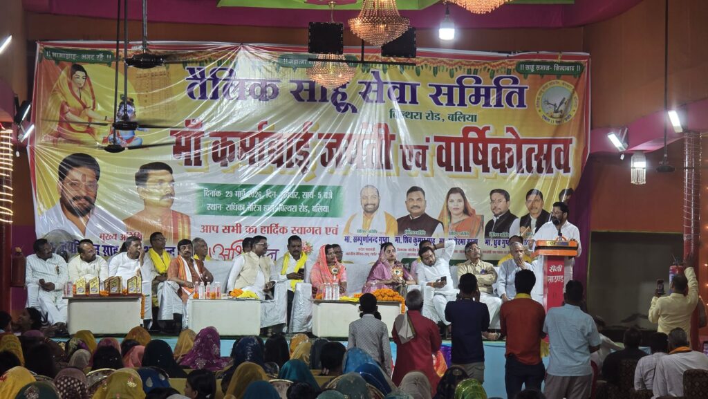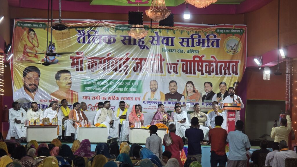 बिल्थरारोड। नगर के राधिका मैरिज हॉल में रविवार की शाम तैलिक साहू सेवा समिति द्वारा मां कर्माबाई देवी की जयंती एवं वार्षिकोत्सव भव्य रूप से मनाया गया। कार्यक्रम का शुभारंभ मुख्य अतिथि गाजीपुर सदर के विधायक जयकिशन साहू ने मां कर्माबाई के चित्र पर पुष्प अर्पित कर एवं दीप प्रज्वलित कर किया।