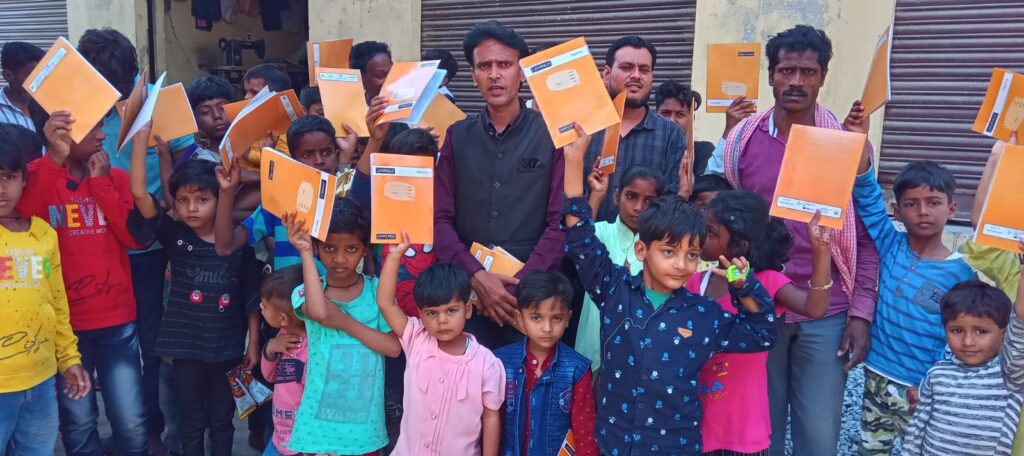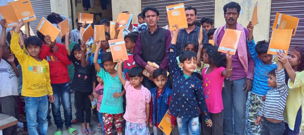 शिक्षा एक समान को लेकर दिल्ली तक साइकिल यात्रा करने वाले कवि, शायर व समाजसेवी अरशद हिंदुस्तानी ने गरीब , असहाय बच्चों को कॉपी, कलम वितरित किया