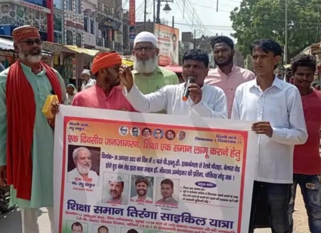 पूरे देश मे शिक्षा एक समान के लिये 11 अक्टूबर को निकलने वाली साइकिल यात्रा के लिए राधेश्याम यादव व उनके सहयोगियों ने नगर में रैली निकालकर लोगो को जागरूक किया