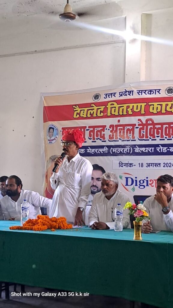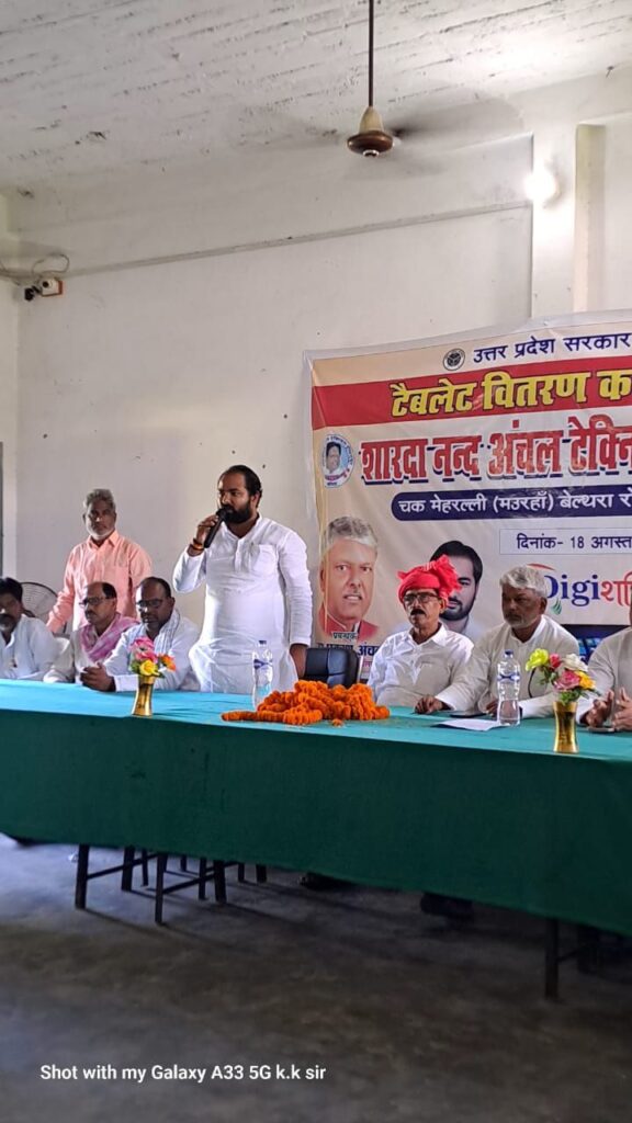 बिल्थरारोड। स्वामी विवेकानंद युवा सशक्ति के तत्वावधान में शारदानन्द अंचल पालीटेक्निक कालेज मउरहा के छात्र को रविवार को टैबलेट वितरित किया गया।  टैबलेट मिलने पर छात्रों के चेहरे खिल उठे। वितरण समारोह के मुख्य अतिथि सलेमपुर सांसद रमाशंकर राजभर ने कहा कि आधुनिक शिक्षा बिना टैबलेट और अन्य तकनीकी संसाधनों के बगैर सम्भव नही है। छात्रों को इसका सदुपयोग करके शिक्षा के क्षेत्र में नया आयाम स्थापित करना चाहिए। महाविद्यालय के प्रबंध निदेशक पूर्व ब्लॉक प्रमुख सीयर विनय प्रकाश अंचल ने छात्रों को बधाई देते हुए छात्रों को उच्चशिक्षा के लिए  टैबलेट का सकारात्मक प्रयोग करने के लिए प्रेरित किया। इस मौके पर टेबलेट वितरण समारोह में प्रधानाचार्य अरुण कुमार, केके गुप्ता, अश्वनी कुमार, अखिलेश यादव, सपा नेता राजन कनौजिया, मोहम्मद रब्बानी, प्रधान अक्षय गुप्ता, घूरा यादव , हरेराम यादव, कृष्णा यादव, अमरनाथ, रामप्रीत आदि समस्त स्टाफ मौजूद रहे।