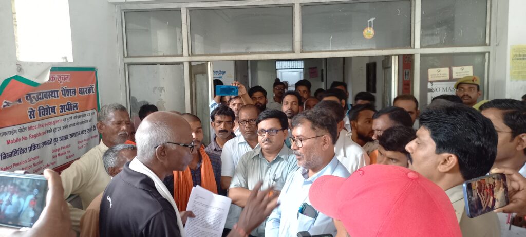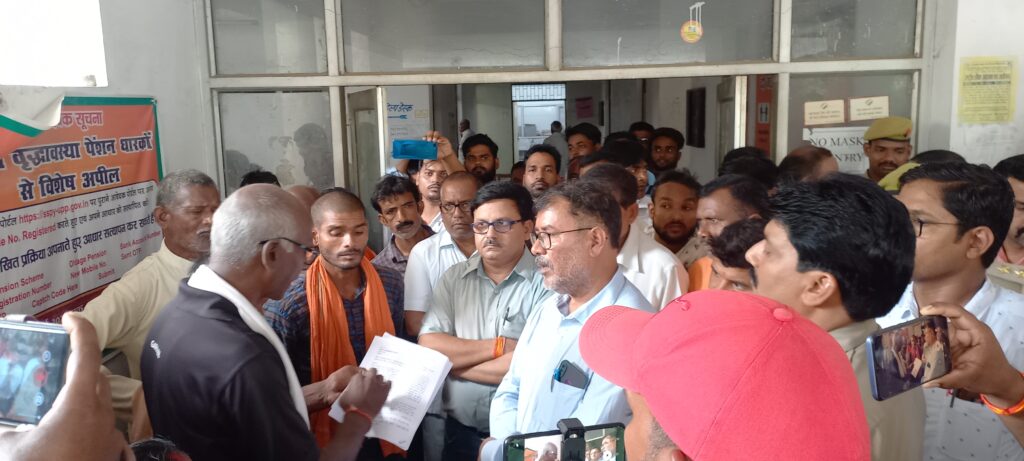 तहसील के चकबन्दी विभाग में व्याप्त भ्रष्टाचार को लेकर अधिकार सेना के नेतृत्व में काश्तकारों ने धरना प्रदर्शन कर चकबन्दी अधिकारी को दिया पत्रक