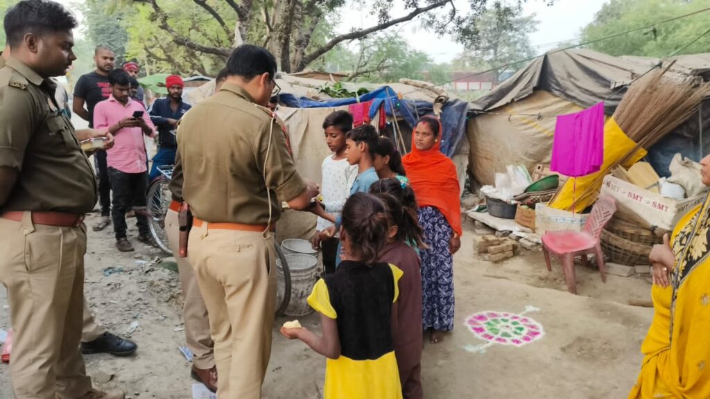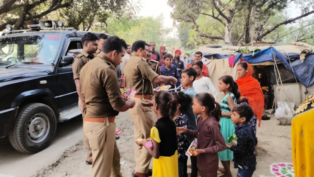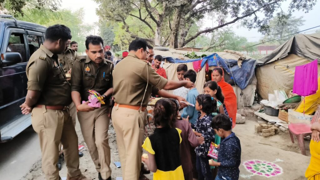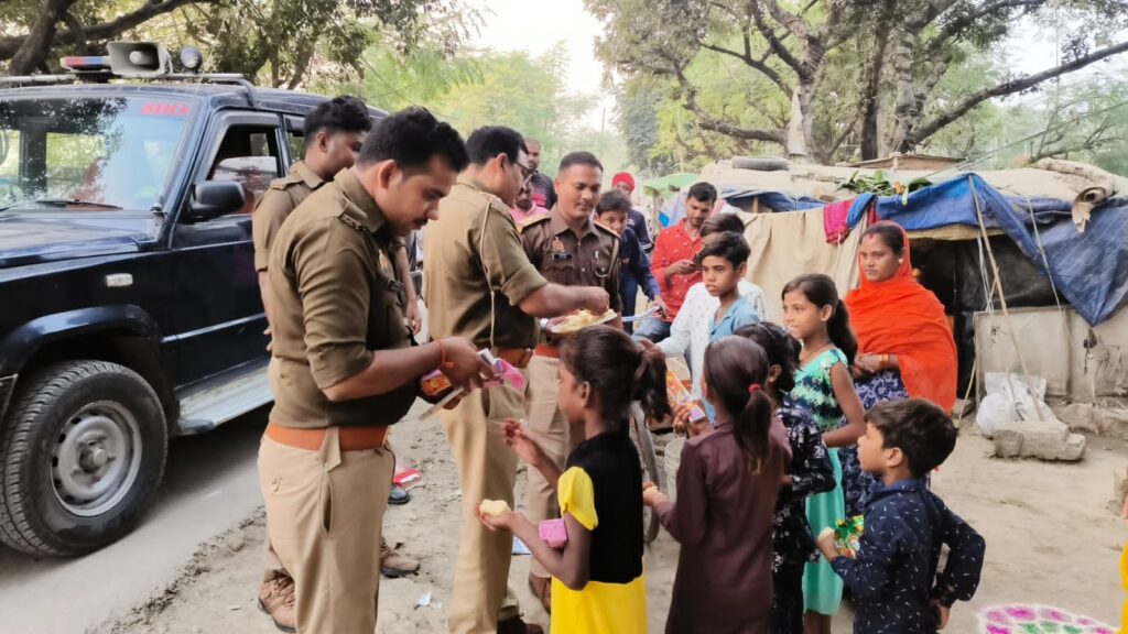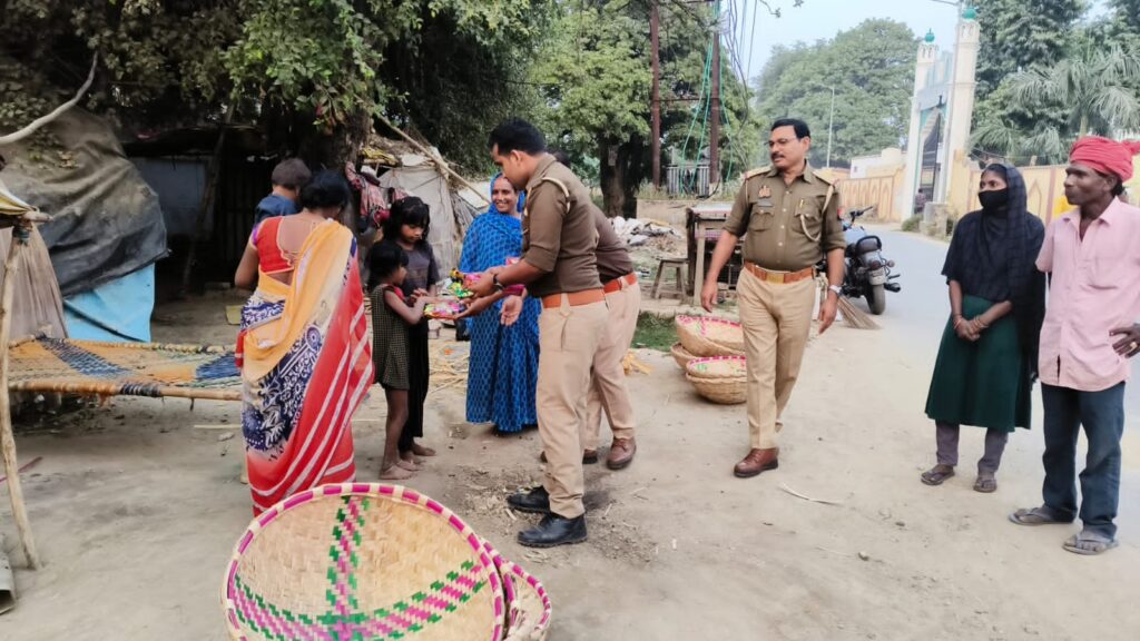 बिल्थरारोड। उभांव इंस्पेक्टर डीके श्रीवास्तव के नेतृत्व में पुलिस द्वारा रविवार शाम को नगर के गरीब व जरूरत मंद बच्चों की आवश्यकताओं को देखते हुए दीपावली के शुभ अवसर पर पटाका व मिष्ठान का वितरण किया गया। नगर के रेलवे स्टेशन , बस स्टेशन पर गरीब असहाय बच्चों व उनके परिजनों को वितरित किया गया। इस अवसर पर उभांव इंस्पेक्टर डीके श्रीवास्तव ने कहा कि गरीब व असहायों की सेवा से बढ़कर कोई सेवा नही है । सबके घरों में राष्ट्रीय पर्व दीपावली का त्योहार खुशी के साथ मनाना चाहिए। वही चौकी इंचार्ज सीयर देवेंद्र कुमार ने बच्चों को दीपावली की बधाई देते हुए सनातन धर्म में परंपरागत चले आरहें रहे त्योहार दीपावली के बारे में गरीब , असहाय बच्चों को अवगत कराते हुए आश्वासन दिया कि वे कभी भी उदास ना हो पुलिस विभाग हमेशा उनके साथ है तथा हर संभव सहायता का प्रयास किया जाएगा। इस मौके पर कांस्टेबल जितेंद्र पासवान, अंकुर वर्मा, देवा साहनी, विकास अन्य स्टाप मौजूद रहे।