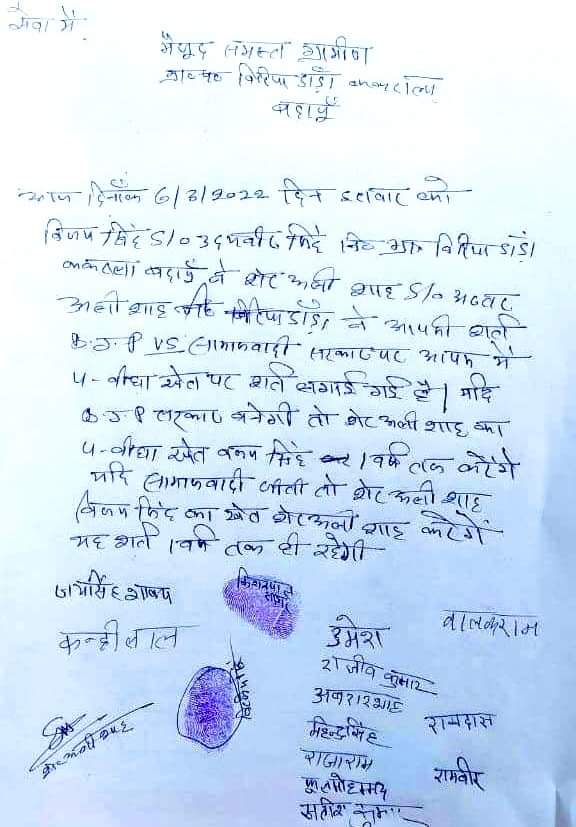 बदायूँ जनपद के ग्राम बिरिया डांडा ( ककराला ) निवासी दो ग्रामीणों ने समस्त ग्रामवासियों के नाम लिखा शर्त का पत्र ।
