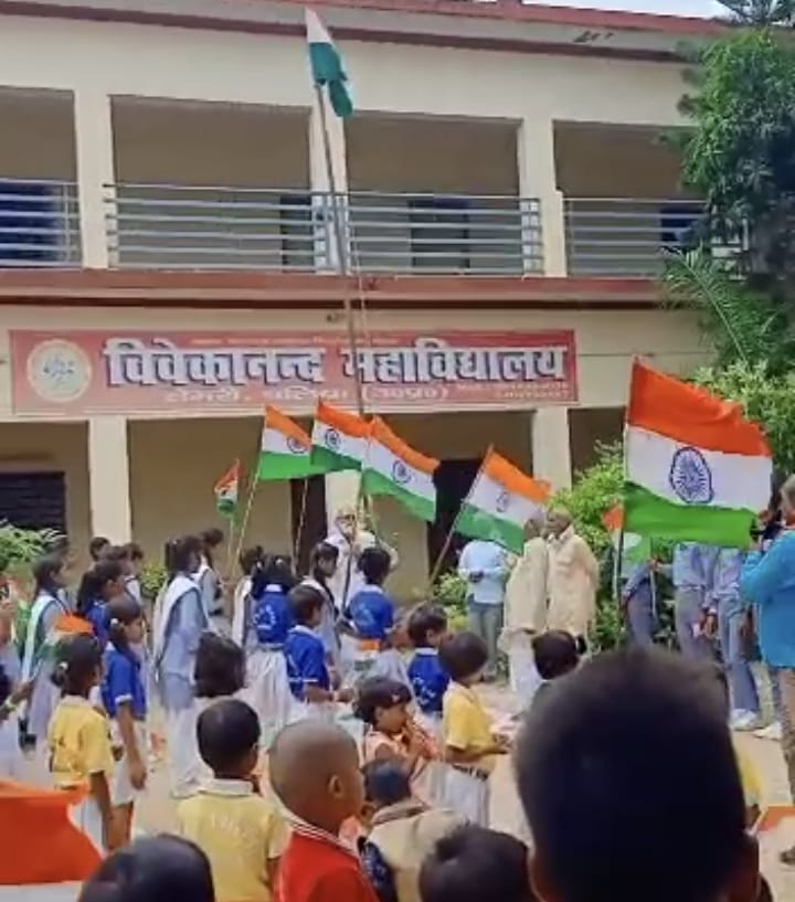 बिल्थरारोड। विवेकानन्द स्नातकोत्तर महाविद्यालय सेमरी एवं विवेकानंद गर्ल्स विद्यापीठ इब्राहिमपट्टी तथा विवेकानन्द गर्ल्स कालेज सेमरी,राम सकल इण्टर कॉलेज सेमरी,विवेकानंद पब्लिक स्कूल सेमरी बलिया के समस्त छात्र एवं छात्राओं द्वारा 15 अगस्त स्वतंत्रता दिवस के अवसर पर विविध कार्यक्रम प्रस्तुत किया गया। कार्यक्रम का शुभारम्भ मुख्य अतिथि डाॅ शशिकांत तिवारी ने ध्वजारोहण कर किया। कहा कि स्वतंत्रता दिवस हमारे पूर्वजों की बलिदानी का परिणाम है जो हम आजाद देश में आजाद नागरिक की जिन्दगी जी रहे हैं। सांस्कृतिक कार्यक्रम का शुभारम्भ प्रबन्धक सत्यनारायण मिश्र ने माँ सरस्वती की प्रतिमा पर माल्यार्पण कर किया। समृद्धि मिश्रा,आस्था यादव,संजना चौहान,रिया सिंह ने सरस्वती वंदना एवं सिन्धु तथा गीतान्जली ने स्वागत गीत गाया। संध्या,नितेश,श्रेयांस, दिब्यांश,हिमांशु,अंशिका,आदित्या,अन्तिमा,प्रांजल, आर्यन,नीतू,अनुष्का,रितिका, प्रियांशी,कशीश,शिवांश,अंकित,जाह्नवी,आदर्श,शिवम,सौम्या,स्नेहा,अश्वनी,आंचल,पलक,आनन्दी,फिजा,जोया ने बहुत ही सुंदर देशभक्ति गीतों पर प्रस्तुती की। गुलफ्सा नें ‘बेटी हिन्दुस्तानी’ गीत से सबका मन मोह लिया। पायल और राधा ने ‘ऐसा देश है मेरा’ गीत से सबको अपनी तरफ आकृष्ट किया। प्रियंका नें ‘जनती जे जारल जईबू बेटी दहेज में’ गीत से सबको रोने पर मजबूर कर दिया।विशाल,पुलक,सचिन,आदित्य,प्रांजल नें ‘तिरंगे के सम्मान में’ गीत प्रस्तुत किया। अर्पिता और बिट्टू सिंह ने ‘कान्हा छोर दो कलाई’ पर उत्कृष्ट प्रदर्शन किया। आर्यन और नीतू नें ‘भांग तनी पीस द’ गीत से सबका दिल जीत लिया और जबर्दस्त तालीयां बटोरी। कार्यक्रम में प्राचार्य डाॅ प्रियंका उपाध्याय,डाॅ सुनील सिंह,डाॅ राकेश यादव,डाॅ सुरेन्द्र कुमार, डाॅ नीरज यादव, निजामुद्दीन,जगन्नाथ मिश्र,प्रदीप कुमार यादव,सन्नीलाल श्रीवास्तव, आफरीन,पूजा यादव,पूनम यादव,शिप्रा श्रीवास्तव,दिलीप कुमार,मनोज कुमार,संतोष श्रीवास्तव के कुशल मार्गदर्शन में हुआ। कार्यक्रम का संचालन मनीष कुमार पांडेय ने किया। टी एन मिश्रा सामाजिक कार्यकर्ता ने कार्यक्रम के सफलतापूर्वक आयोजन के लिए सभी विद्यालयों के संयोजक एवं छात्र तथा छात्राओं एवं उनके अभिभावकों का धन्यवाद देते हुए कार्यक्रम का समापन किया।
