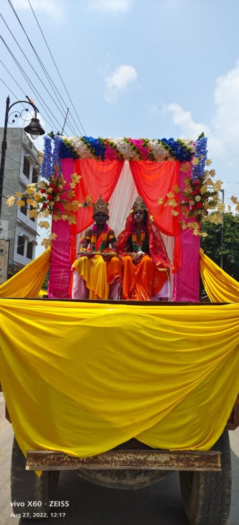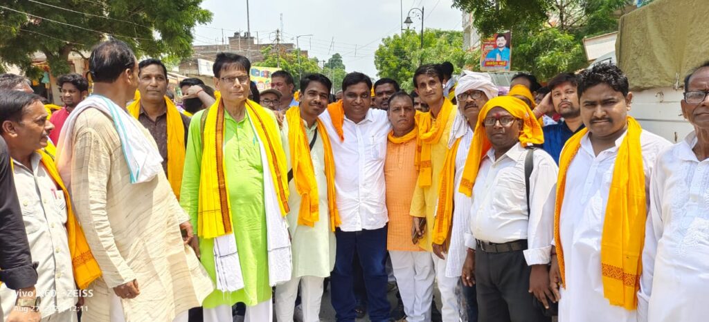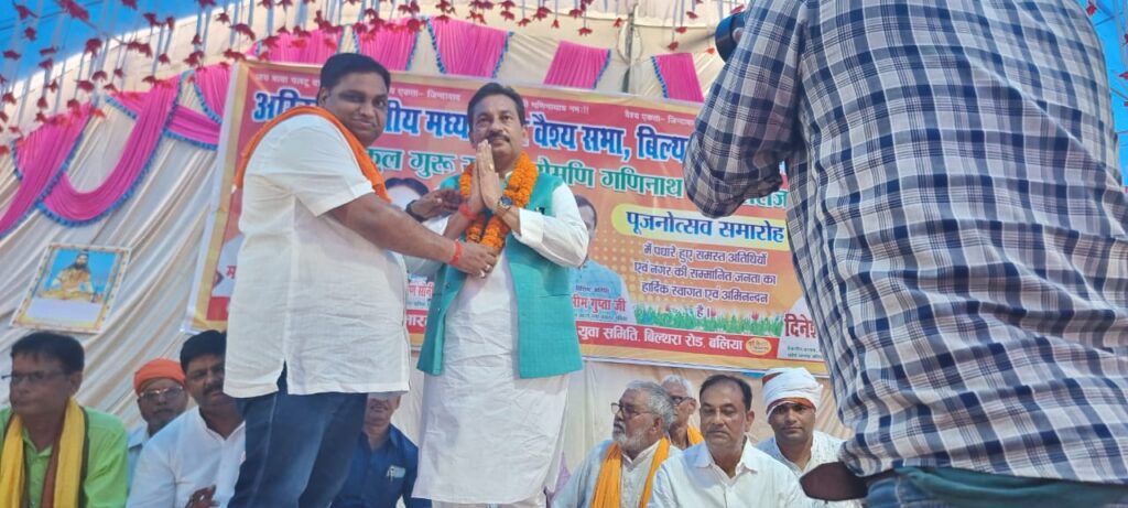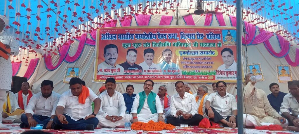 बिल्थरारोड । संत शिरोमणि बाबा गणिनाथ जी महाराज का वार्षिक जन्मोत्सव व पूजनोत्सव कार्यक्रम शनिवार को नगर के पुलिस चौकी गली में मद्धेशिया समाज के प्रस्तावितधर्मशाला स्थल पर बड़े ही धूमधाम से पारम्परिक तरीके से मनाया गया। कार्यक्रम का शुभारंभ अखिल भारतीय मध्यदेशीय वैश्य सभा के प्रदेश अध्यक्ष और नपं चेयरमैन दिनेश गुप्ता ने मद्धेशिया वैश्य समाज के ध्वज को फहराया। जिसके बाद गीत के माध्यम से सामुहिक रुप से ध्वजाभिवादन किया गया। अखिल भारतीय मद्धेशिया वैश्य सभा के प्रदेश अध्यक्ष और नगर चेयरमैन दिनेश गुप्ता ने बाबा गणिनाथ जी महाराज के जुलूस में मनोहर झांकी हाथी, घोड़े के साथ निकली गयी। जिसमे गगन भेदी पताका लहरा रहे थे। जिसके बाद वैदिक मंत्रोच्चारण के साथ पूजनोत्सव किया गया। कार्यक्रम के मुख्य अतिथि चायल कौशाम्बी के पूर्व विधायक संजय गुप्ता विशिष्ट अतिथि रसड़ा के चेयरमैन वशिष्ठ नारायण सोनी, मधुबन मऊ के चेयरमैन शंकर मद्धेशिया, मनियर के चेयरमैन भीम गुप्ता को नगर चेयरमैन दिनेश कुमार गुप्त ने सभी अतिथियों को मोमेंटो व अंगवस्त्र देंकर सम्मानित किया। कार्यक्रम में मद्धेशिया समाज की बड़ी संख्या में महिलाएं भी शामिल हुई। सामाजिक प्रधान आनंद आर्य, डा. श्रीराम गुप्ता ने वैदिक मंत्रोच्चारण के साथ सार्वजनिक हवन कराया। जिसमें समाज के बड़ी संख्या में लोगों ने एक साथ हवन कार्यक्रम में सहभागिता की और समाज के उत्थान एवं प्राकृतिक आपदाओं से बचाने की कामना की। पूजनोत्सव कार्यक्रम में वैश्य सेवा समिति के अध्यक्ष मोहन मद्धेशिया,मृत्युंजय गुप्ता,सौरभ गुप्ता उर्फ गोलू, विजय मद्धेशिया, गणेश गुप्ता, संजय गुप्ता, आलोक गुप्ता, वशिष्ठ मद्धेशिया, ओमप्रकाश गुप्ता, हरिद्वार मद्धेशिया, प्रह्लाद गुप्ता, राममनोहर गांधी, अमित जायसवाल,शिवकुमार जायसवाल, दिलीप मद्धेशिया, बबलू, चंदन मद्धेशिया, सतीश गुप्त, देवेन्द्र गुप्ता, प्रवीण नारायण गुप्त, राजू जायसवाल, प्रशांत जायसवाल मंटू, दुर्गाप्रसाद मधुलाला,मनीष मद्धेशिया, गोलू, रमेश मद्धेशिया, धीरज गुप्ता, मुन्ना, मनोज गुप्ता , अरविन्द गुप्ता , प्रहलाद, संजय मिंटू, नवल मद्धेशिया, सत्यम मद्धेशिया, अतुल मद्धेशिया , धनु मद्धेशिया , समेत बड़ी संख्या में लोग मौजूद रहे। पूजनोत्सव के उपरांत प्रसाद का वितरण किया गया। जिसमे सैकड़ो लोगो ने प्रसाद ग्रहण किया।