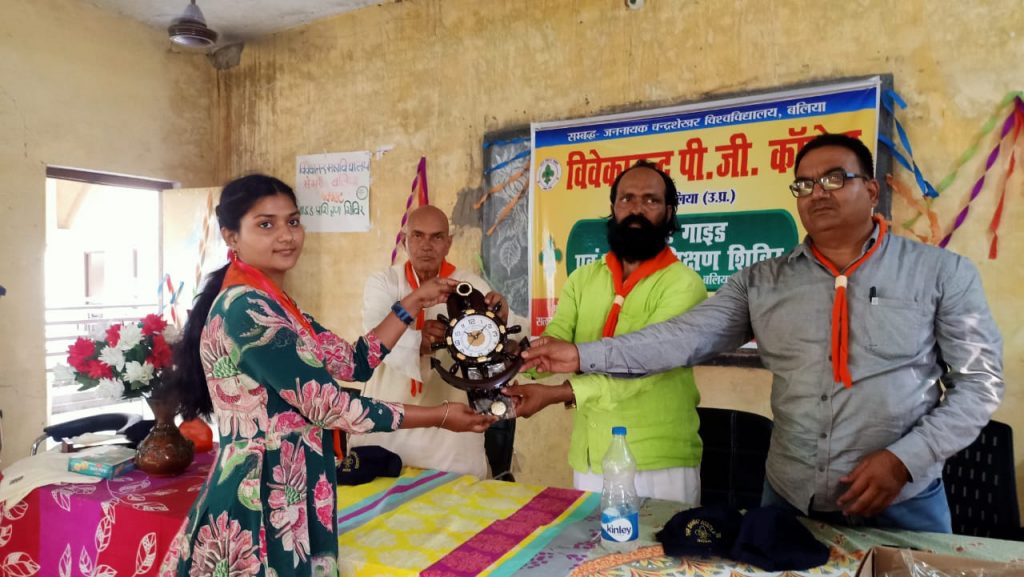बिल्थरारोड। विवेकानन्द स्नातकोत्तर महाविद्यालय सेमरी के प्रांगण में जिला स्काउट गाइड संस्था बलिया के तत्वावधान में बीएड चतुर्थ सेमेस्टर के छात्र/ छात्राओं द्वारा स्काउट गाइड एवं योगा प्रशिक्षण का पांच दिवसीय शिविर गुरुवार को सम्पन्न हो गया। इस प्रशिक्षण के समापन अवसर पर मुख्य अतिथि एवं कार्यक्रम की अध्यक्षता महाविद्यालय के प्रबंधक सत्यनारायण मिश्र नें की। प्रबंधक नें सर्वप्रथम माँ सरस्वती के चित्र पर पूजन कर कार्यक्रम का शुभारम्भ किया। उक्त कार्यक्रम में योगा,टेंट,ब्रीज,पोस्टर,भोजन आदि प्रतियोगिता के साथ ही विविध सांस्कृतिक कार्यक्रम प्रस्तुत किए गए। कार्यक्रम में बीएड चतुर्थ सेमेस्टर के छात्रों में अंकिता तिवारी,रूबी शर्मा,देवेश पाठक,सुरभि सिंह,शशिकांत,स्नेहा गुप्ता आदि नें सक्रिय भूमिका निभाई। योगा प्रशिक्षक मो.शमीउल्लाह एवं स्काउट गाइड प्रशिक्षक नफील एवं संजीत ने अपनी उत्कृष्ट दक्षता से छात्रों का प्रशिक्षण कराया । लोगो ने प्रशिक्षकों द्वारा बनाये गए लजीज व्यंजनों का भी लुत्फ उठाया। सामाजिक कार्यकर्ता डॉ टी एन मिश्र ने योगा एवं स्काउट को सभी के लिए अनिवार्य बताया। कार्यक्रम को सम्पन्न कराने में डा सुनील सिंह,डा सुरेन्द्र कुमार,डा राकेश कुमार यादव,डा नीरज यादव,अनिल यादव,हेमंत कुमार,प्रेमचंद मौर्य,संतोष,दिलीप,मनोज नें उत्कृष्ट योगदान दिया ।